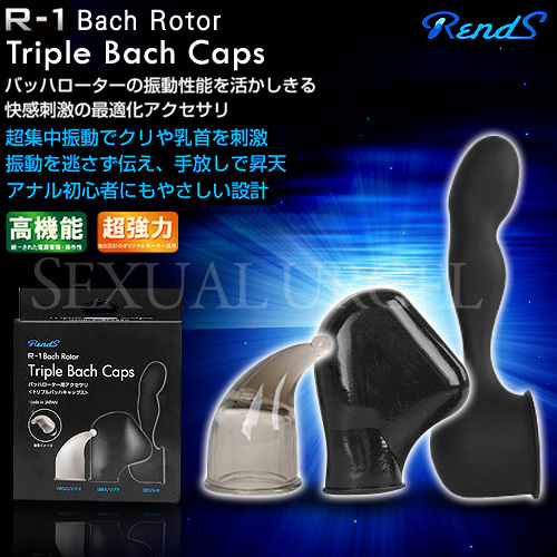 R-1 Bach Rotor最新配件Triple Bach Caps巴赫跳蛋男女同樂配件組,享受乳頭陰道後庭龜頭多重樂,配件(直接套在Bach Rotor跳蛋上)包含: