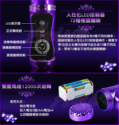 雪豹突擊-電池/110V/USB 三用頂級多功能滾珠按摩棒-紫