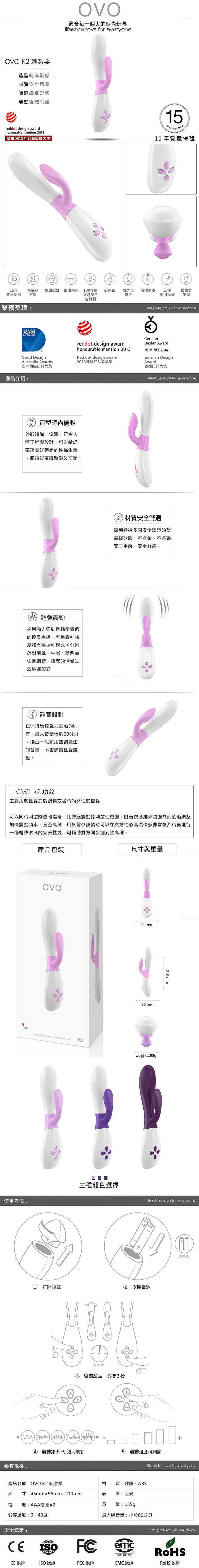 .主商品:德國OVO-K2 夢幻芭比 5段變頻 多功能 雙叉 震動按摩棒-粉色X1
