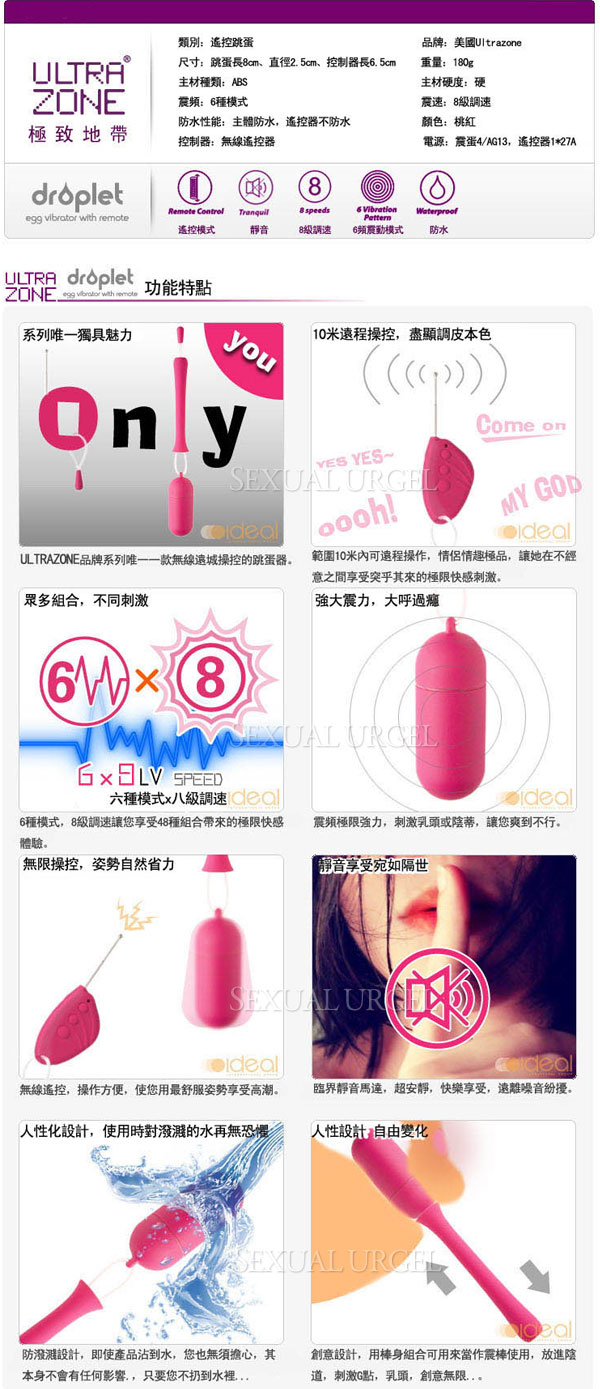 .主商品:美國 Ultrazone Droplet snow drop 夢幻雪花 創意變形 遙控跳蛋 桃紅x1