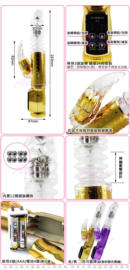 .商品名稱:第四代-加藤鷹潮吹指-72段 電鍍款(伸縮式)變頻滾珠G點按摩棒-金*1