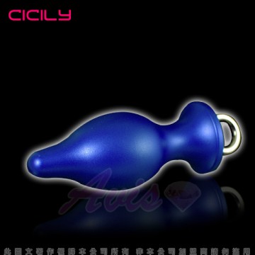 CICILY-塞吧七彩小肛栓 金屬後庭塞-藍(L)