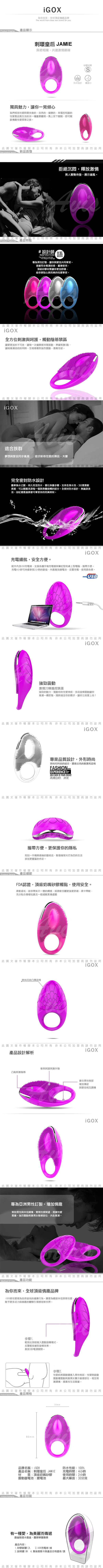 .商品名稱:香港IGOX JAMIE 刺環皇后 JAMIE 20頻 男用震動環 USB充電  魅紫*1