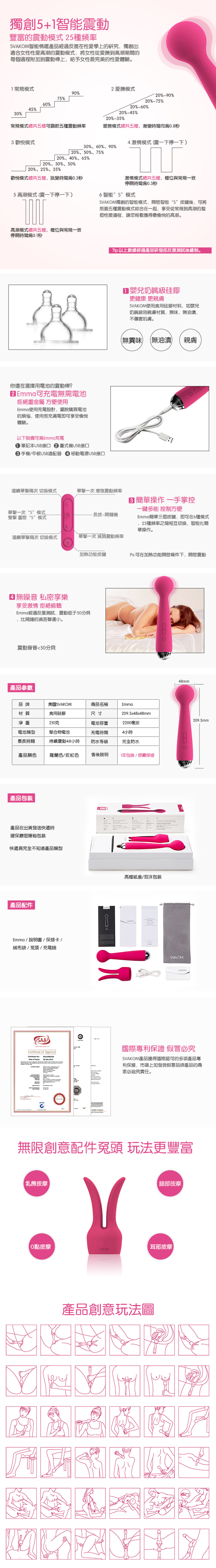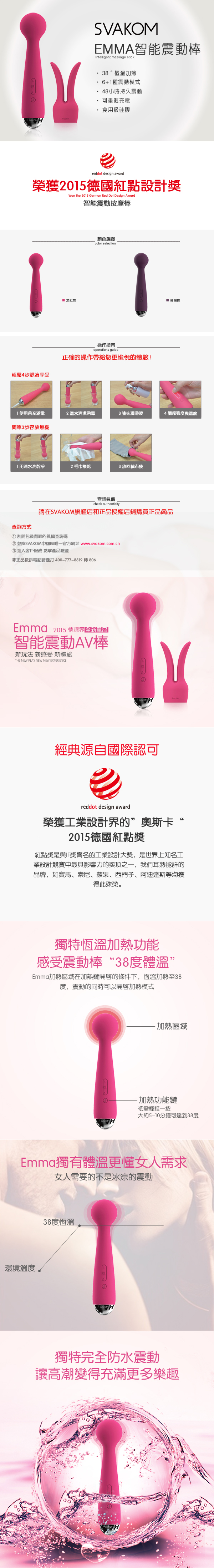 .商品內容:美國SVAKOM Emma 艾瑪 (獨特加熱鍵) 智能模式 震動AV棒 搭配AV頭套 X1