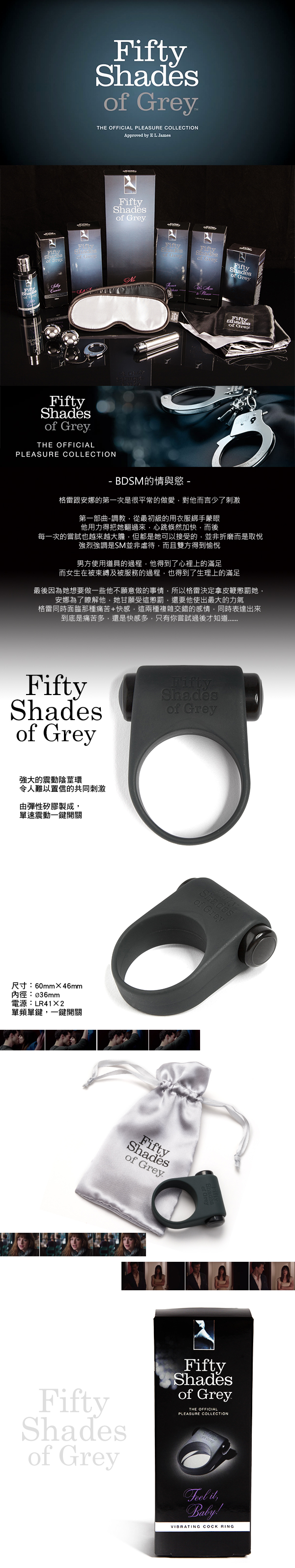 .商品內容:Fifty Shades Of Grey 格雷的五十道陰影 寶貝感覺它震動 震動屌環