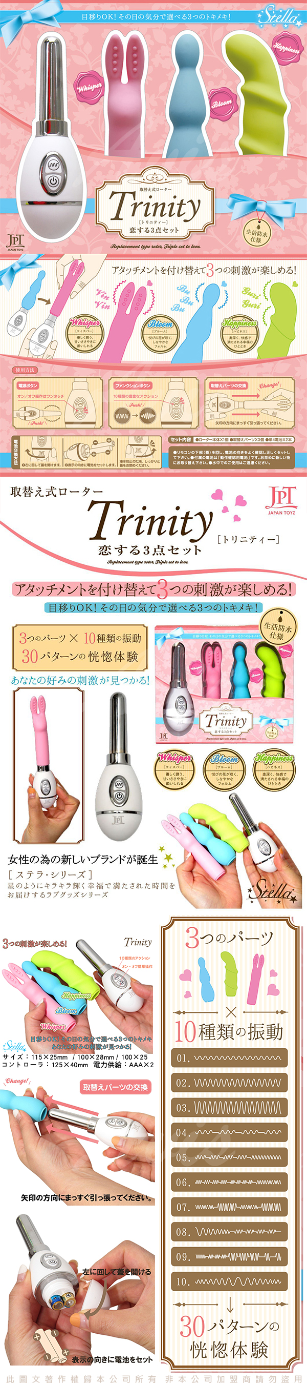 日本JPT 年度夢幻鉅作Stella璀璨之星 10段變頻 Trinity造型震動按摩器