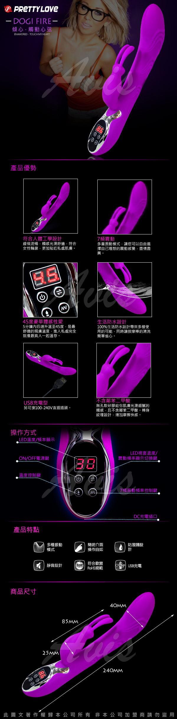 .主商品:DIGI FIRE 火辣勁情 7頻 45℃溫熱系 可充電按摩棒