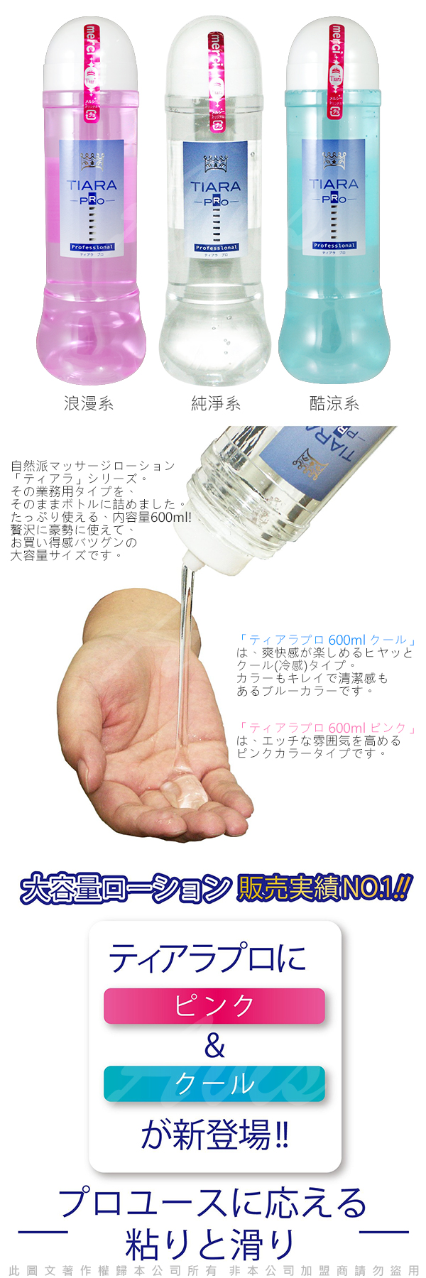 日本NPG Tiara Pro 自然派 水溶性潤滑液 600ml 純淨系 自然水溶舒適
