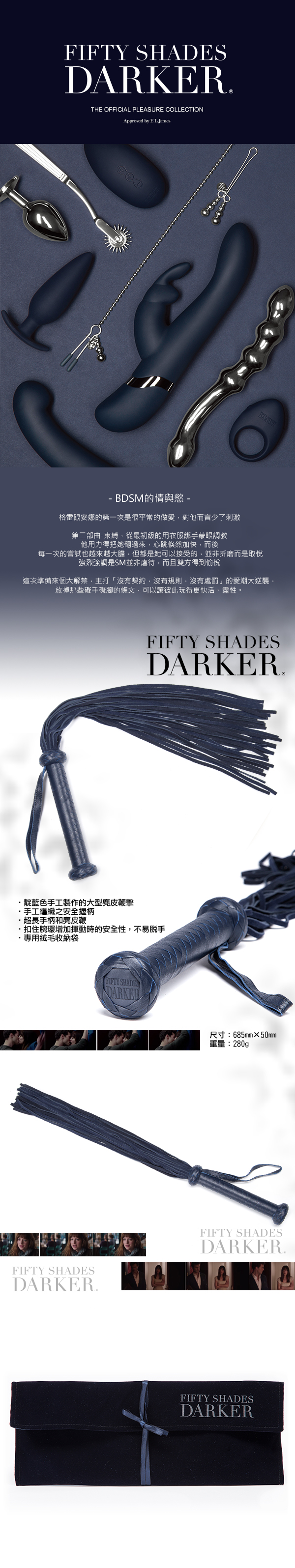 .商品內容:Fifty Shades Darker 格雷的五十道陰影2-束縛 你的陰暗面 麂皮手工編織 大型皮鞭