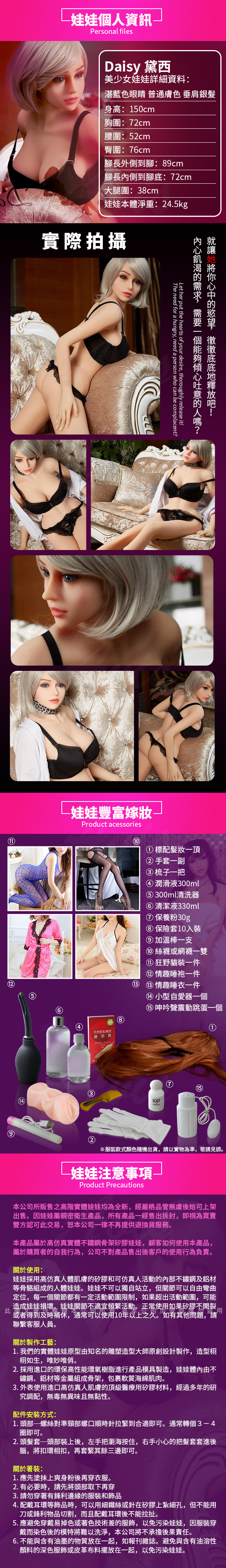 .商品內容:Daisy 黛西 不銹鋼變形 真人實體娃娃 乳交 肛交 陰交 真人倒模 情趣骨骼娃娃  150cm / 24.5kg 非充氣娃娃