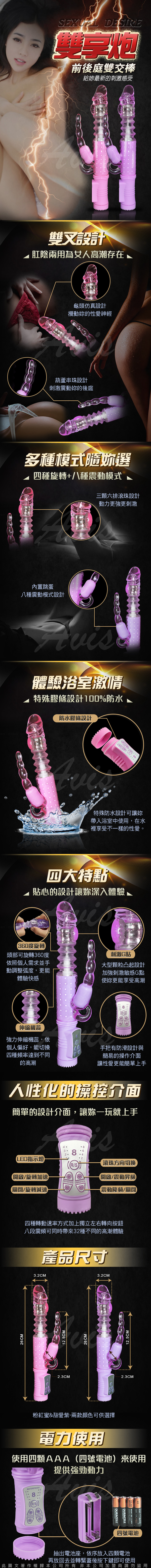 名稱:雙享炮 4X8段伸縮+變頻 360度扭轉 轉珠按摩棒