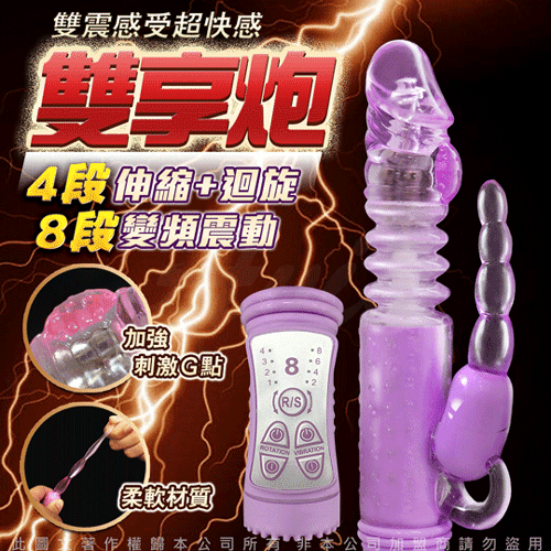 雙享炮 4X8段伸縮+變頻 360度扭轉 轉珠按摩棒 紫