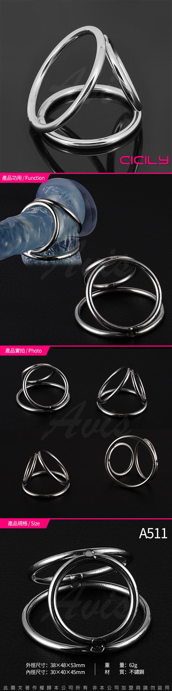 .商品內容:虐戀精品CICILY 硬朗老二 公雞三環 金屬鎖精 陽具環