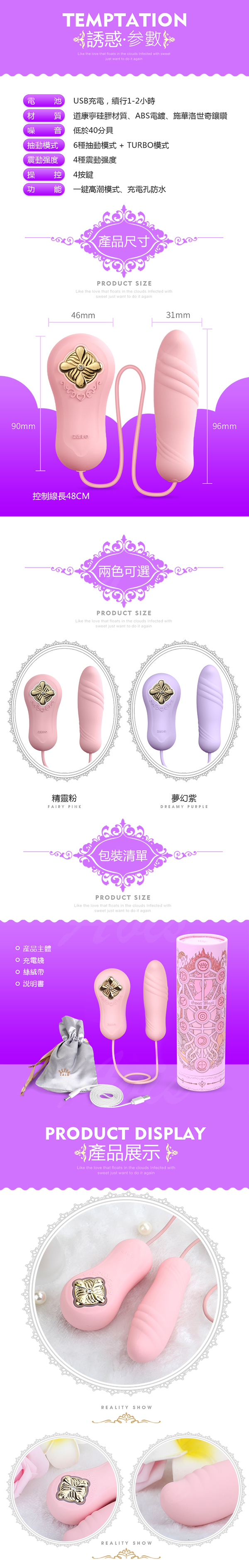 .商品名稱:法國ZALO 甜蜜魔法系列 Temptation 誘惑 可預熱自動抽插型跳蛋