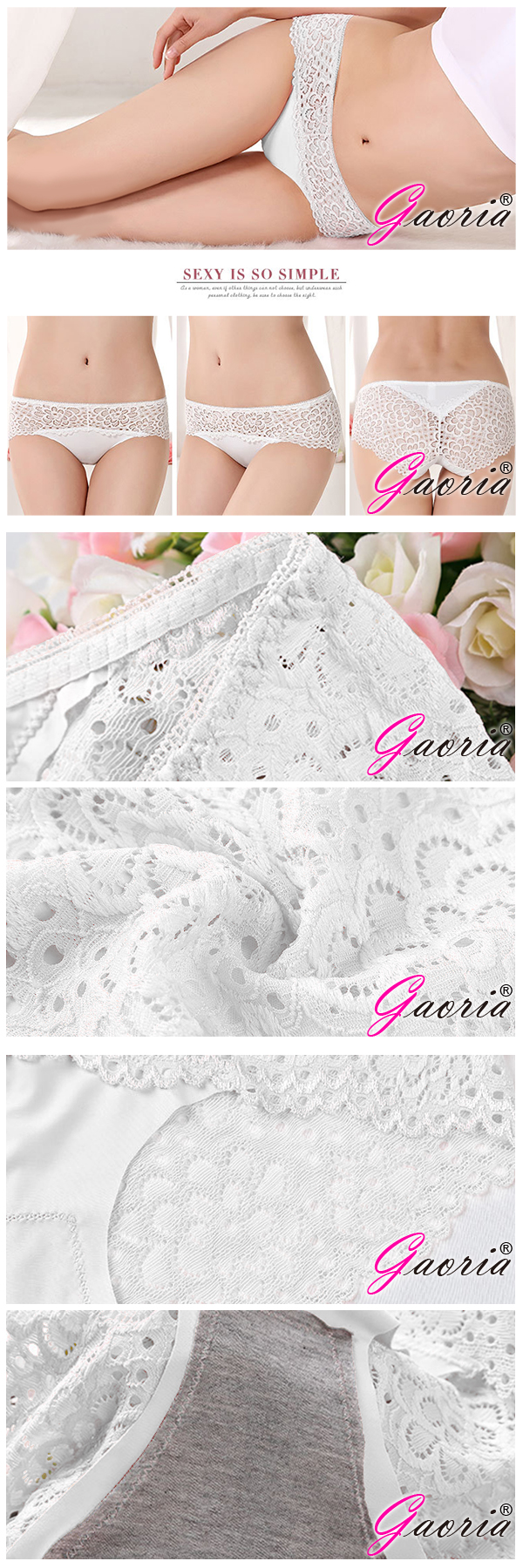 【Gaoria】狂潮熱戀 性感蕾絲拼接無痕 性感內褲三角褲 白