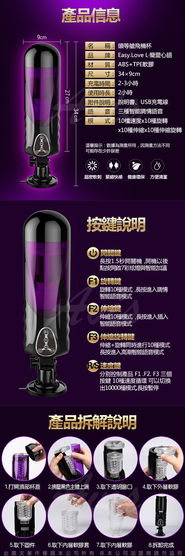 .商品名稱:頭等艙 升級版 自動伸縮抽插 叫床互動發聲 充電夾吸倒模炮機 免持吸盤飛機杯 加熱款