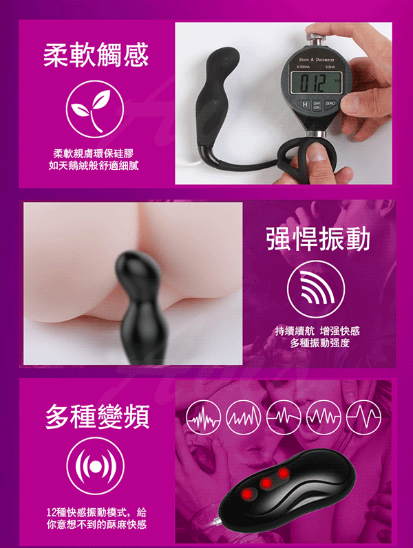 鎖陽電動前列線刺激器震出您激情快感,鎖陽束精使用三重鎖陽鎖根固蛋減緩您血液回流速度使老二上翹堅挺!後庭按摩貼合的黃金彎曲設計輕鬆刺激您的前列線讓高潮更舒適讓您進入另一種境界。搭配強悍的12段持續震動快感模式增強您的快感享受給您意想不到的酥麻享受。採用如天鵝絨般舒適細膩的環保矽膠讓您放心使用,更有貼心的靜音防水功能讓您不論在哪都能盡情解放您的慾望!