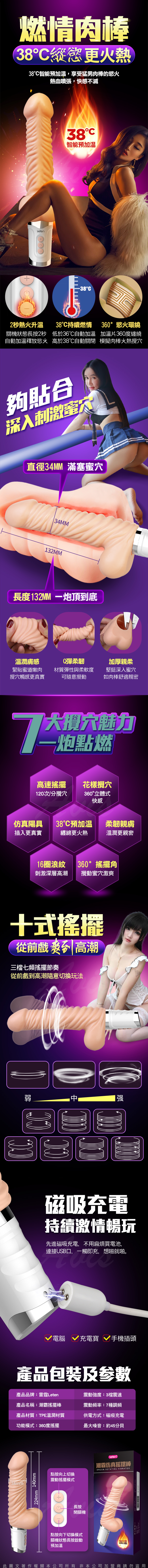 .商品名稱:LETEN 潮霸搖擺 智能加溫 仿真陽具全自動搖擺震動按摩棒 磁吸式充電