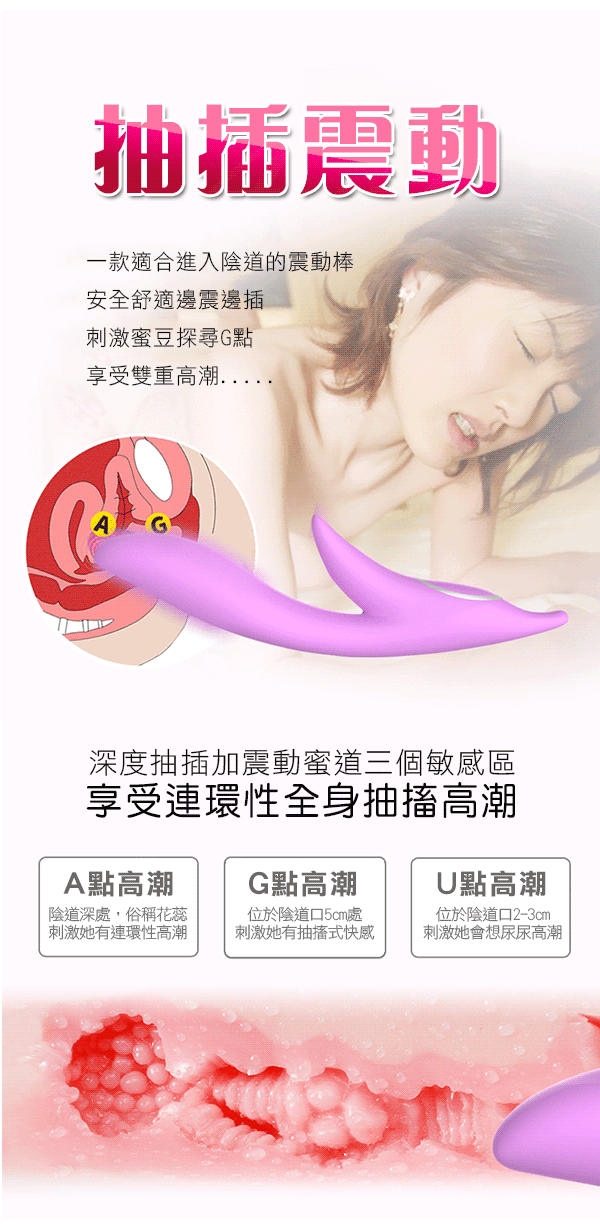 插入蜜穴同時 U型口設計夾按陰蒂挑逗,快感瞬間遍布全身讓他抽蓄酥麻