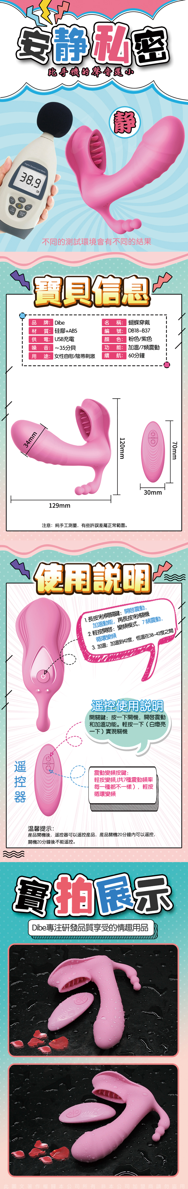 .主商品:Dibe-雙震穿蝶4代 7段變頻 加溫無線遙控穿戴震動棒-豪華版-粉