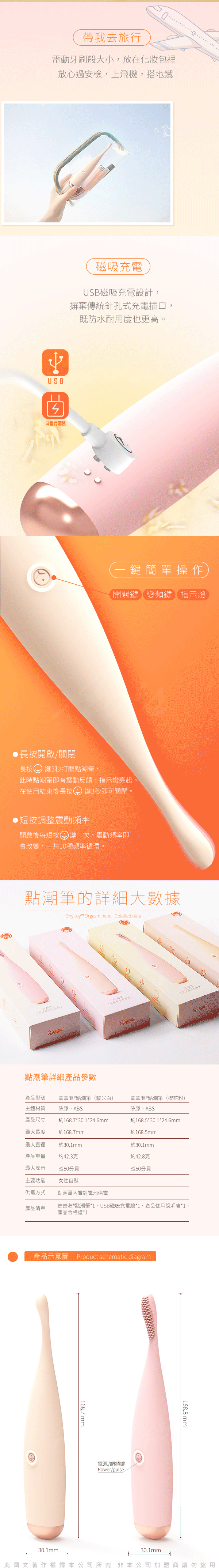 .商品名稱:香港久興-點潮筆 毛刺型 10段變頻 聲波震擊蜜豆刺激矽膠按摩棒-櫻花粉