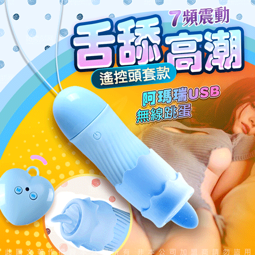 精靈遊戲 7段變頻 USB無線遙控跳蛋 舌舔頭套款 藍