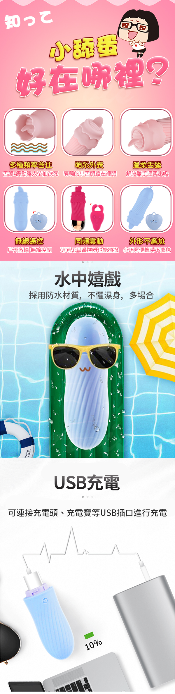 .商品名稱:精靈遊戲 7段變頻 USB無線遙控跳蛋 舌舔頭套款 藍