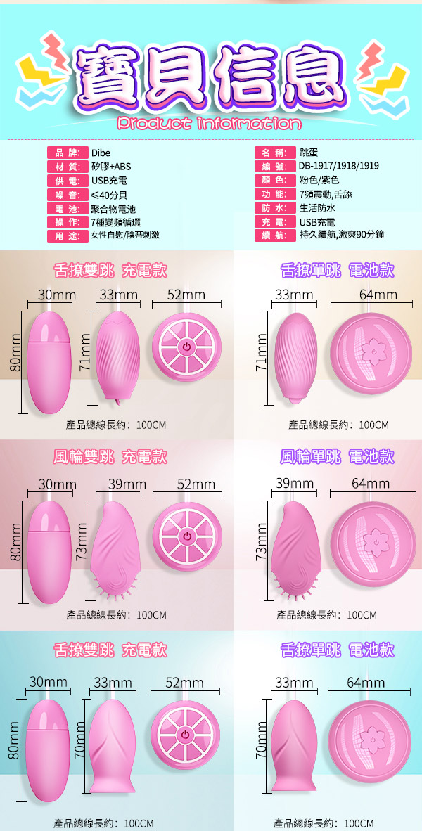 Dibe-軟舌萌動 7頻震動 風輪雙跳蛋 充電款