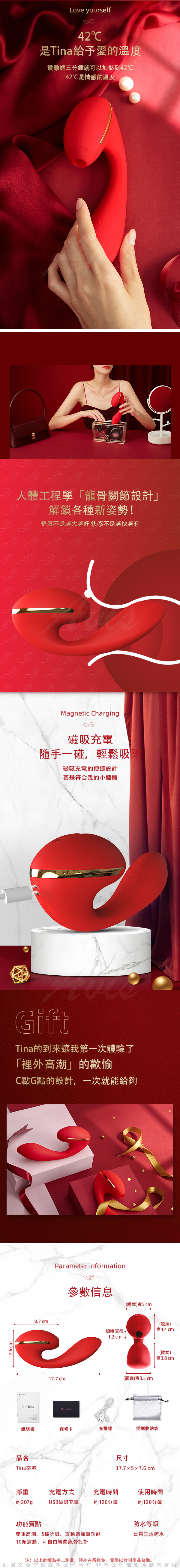 KISS TOY Tina 蒂娜 雙重高潮 智能加溫 吸吮震動 按摩棒