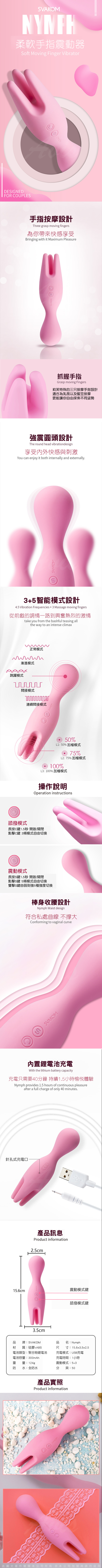 Nymph甜美溫柔的指尖輕觸你的皮膚。它會振動,循環,刺激你最敏感的部位。帶來刺激的波浪,讓您得到快感。