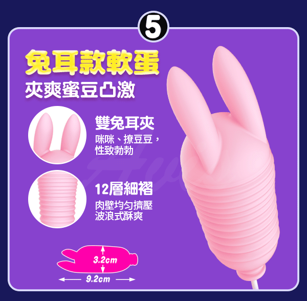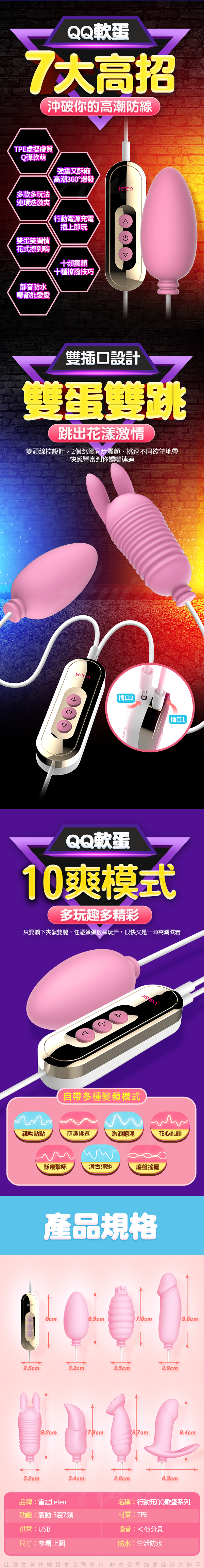 .主商品:Leten-Q軟蛋 USB直充供電隨插即用雙跳蛋-兔耳款