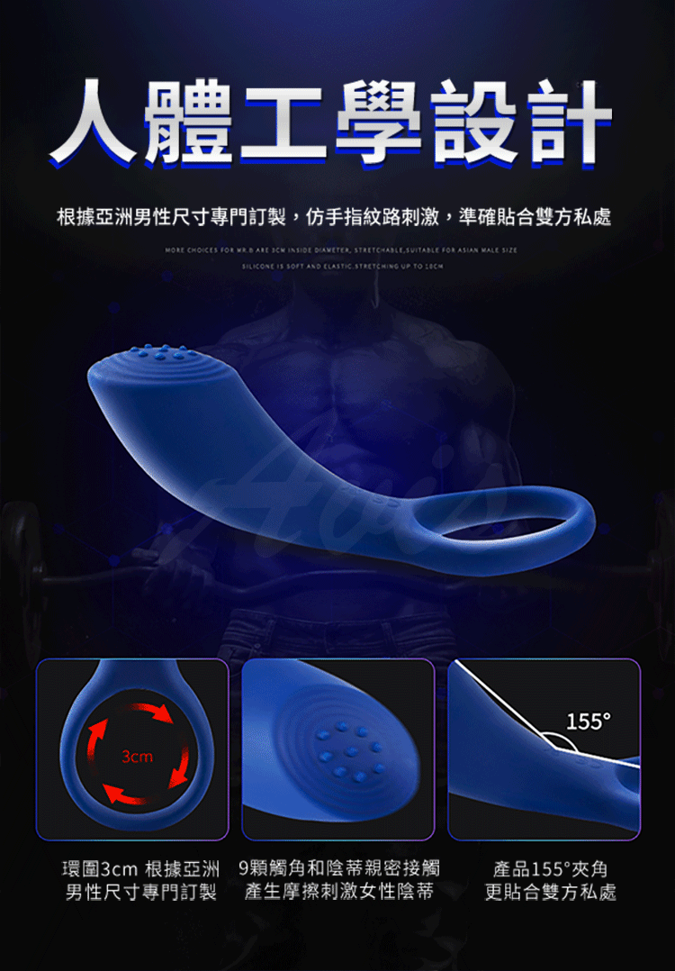 .主商品:Mr.B-B9大漢猛男互震8頻震動套環-藍