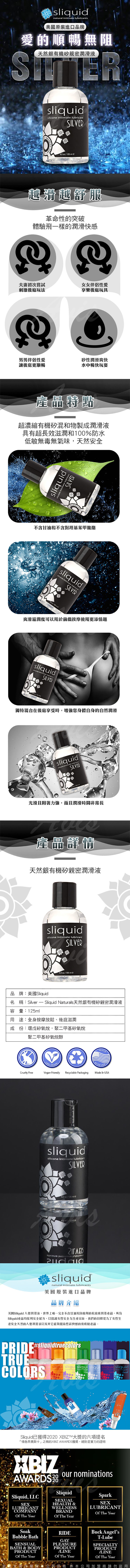 .主商品:美國Sliquid 天然銀有機矽性 親密潤滑液 125ml