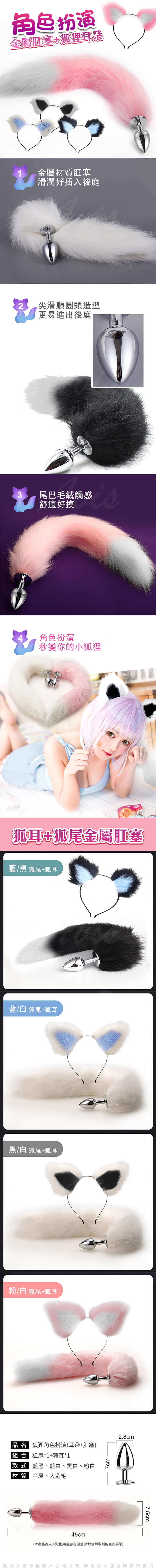 妖豔小狐狸角色扮演 毛絨耳朵+不鏽鋼肛塞尾巴 狐狸尾 黑藍