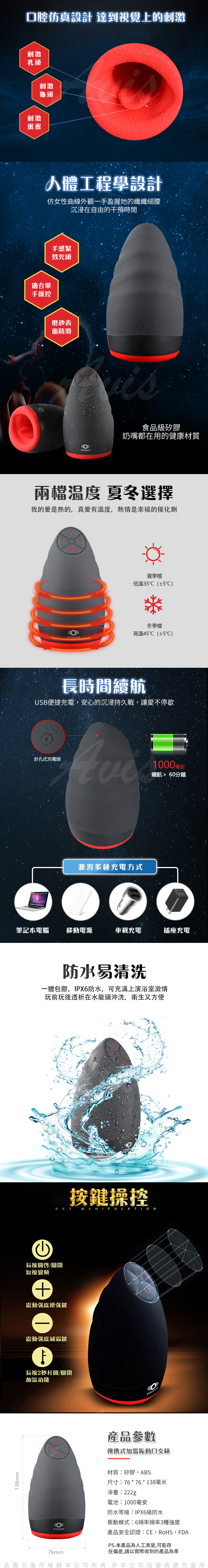 .主商品:OTOUCH CHIVEN2 熾吻2 6頻震動 3檔強度 2檔加熱電動飛機杯