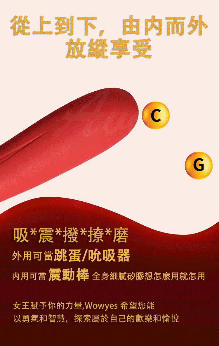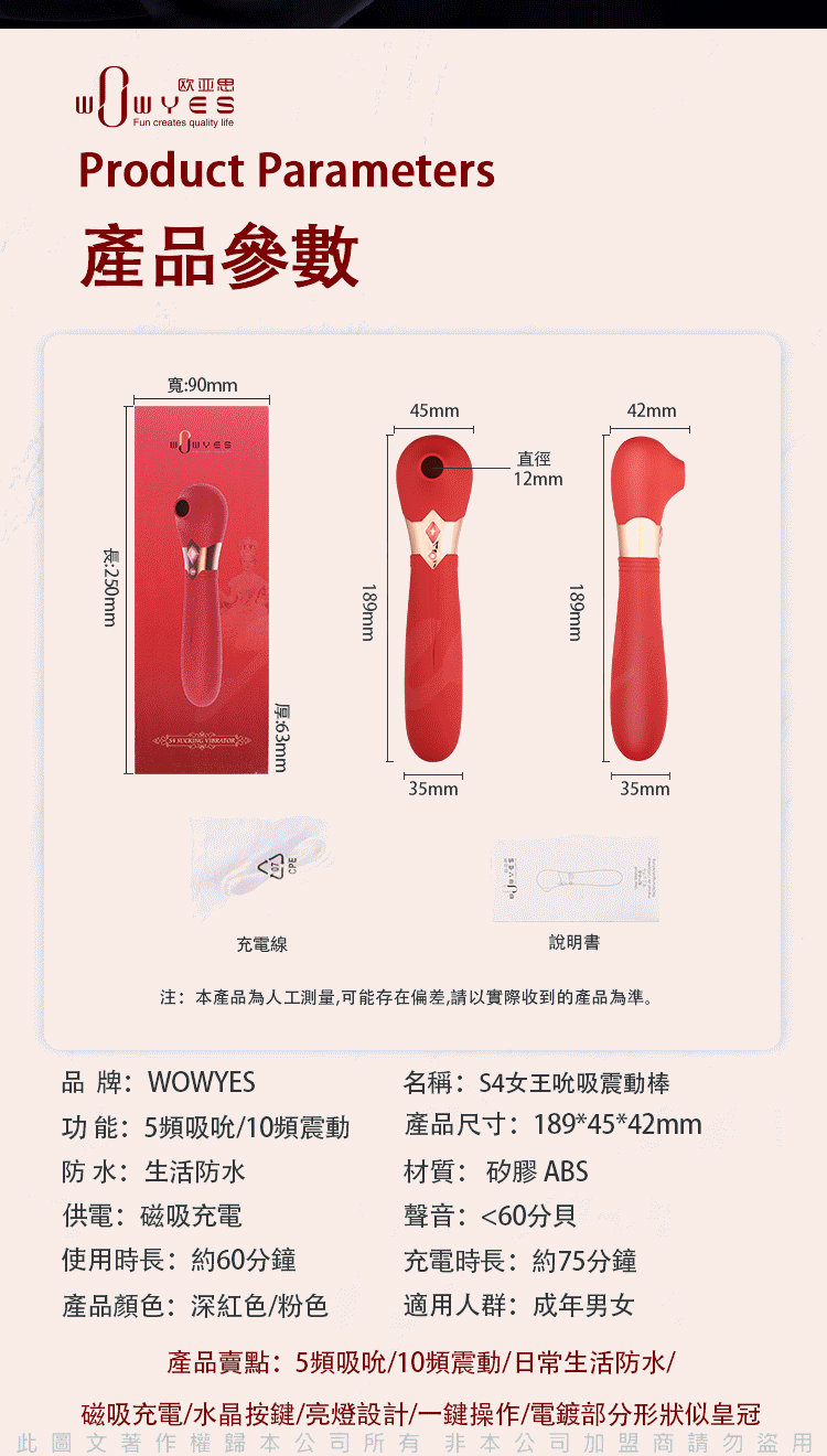 .主商品:WOWYES-S4女王 5頻吸吮x10頻震動唇舌快感矽膠按摩棒-粉-標準版