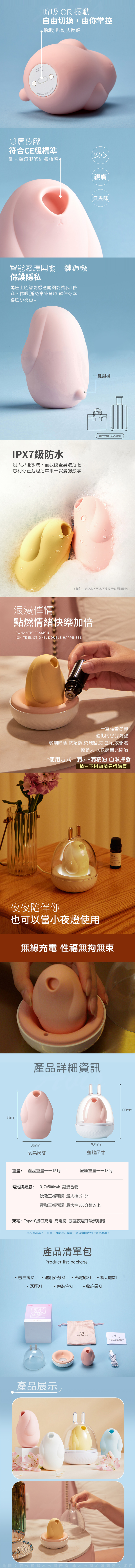 如天鵝絨般的細膩觸感,安全、親膚、無異味 吸吮or震動
