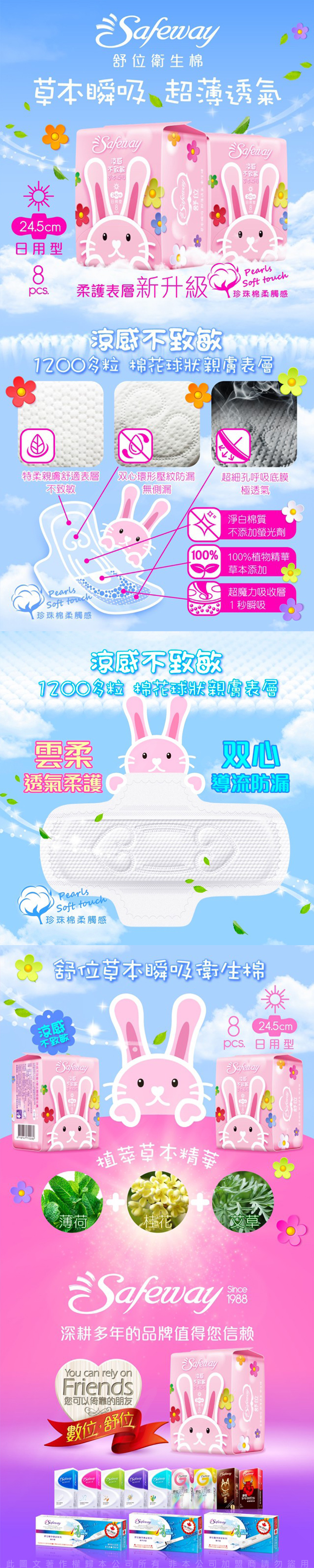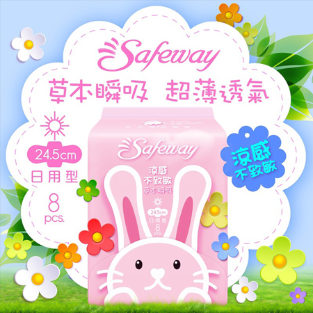 Safeway舒位-草本瞬吸 涼感衛生棉 24.5cm日用型 8片