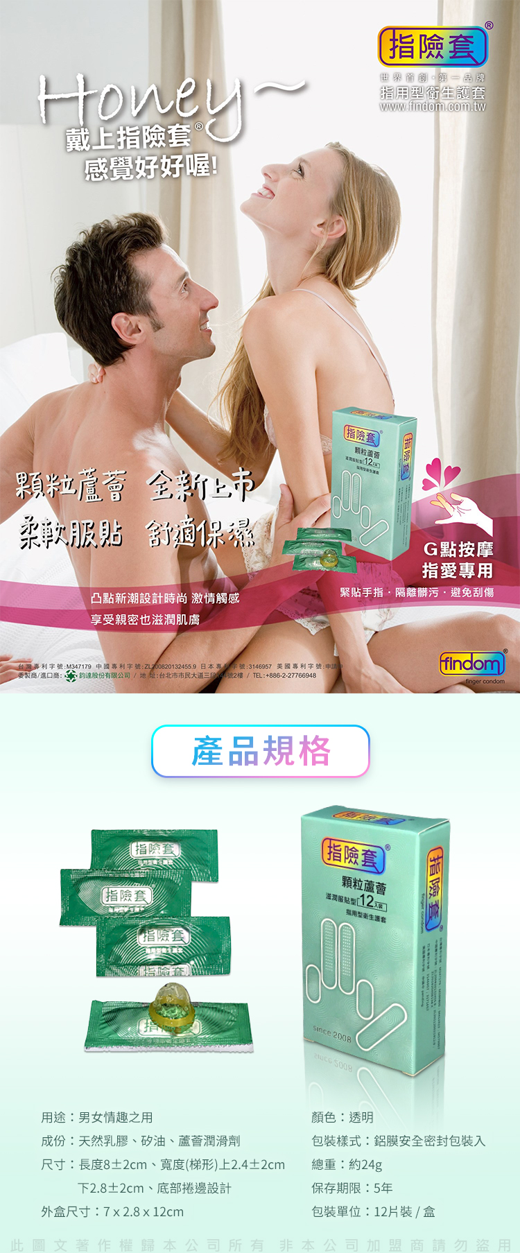 產品名稱:FINDOM 顆粒蘆薈指險套-12入