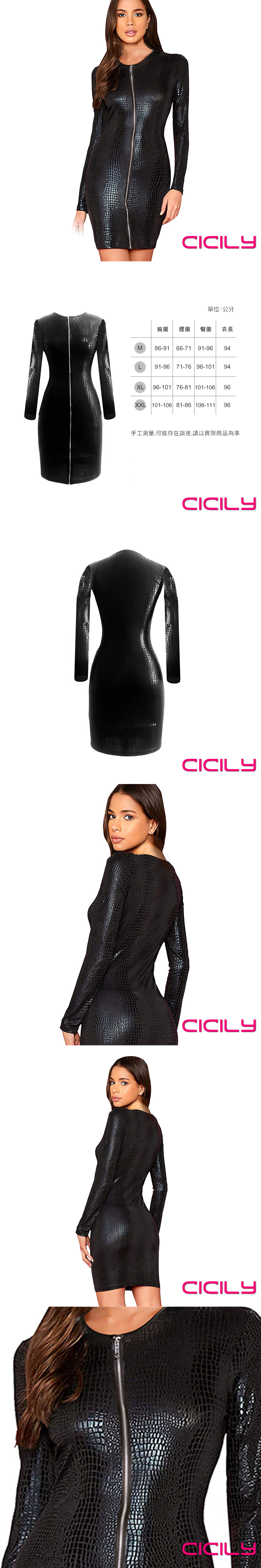 .主商品:CICILY 蛇姬 仿蛇皮緊身拉鍊裙 漆皮膠衣 XL