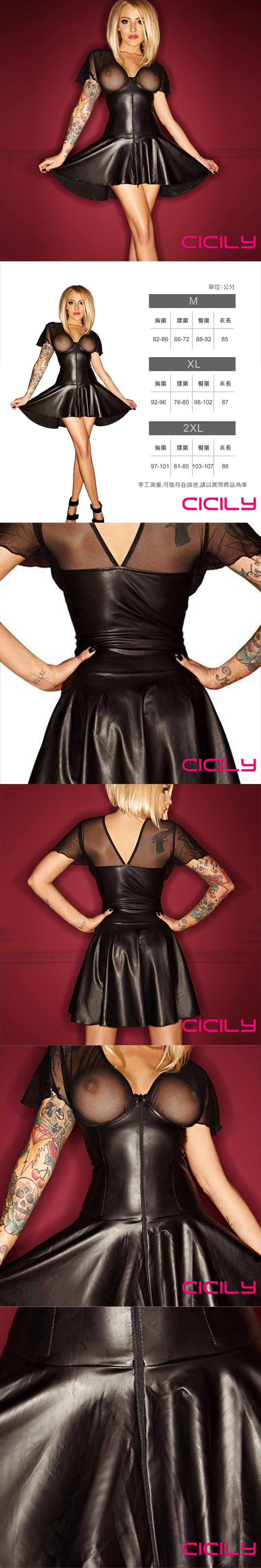 .主商品:CICILY 性感V領透視網紗袖連衣裙 漆皮膠衣 XL
