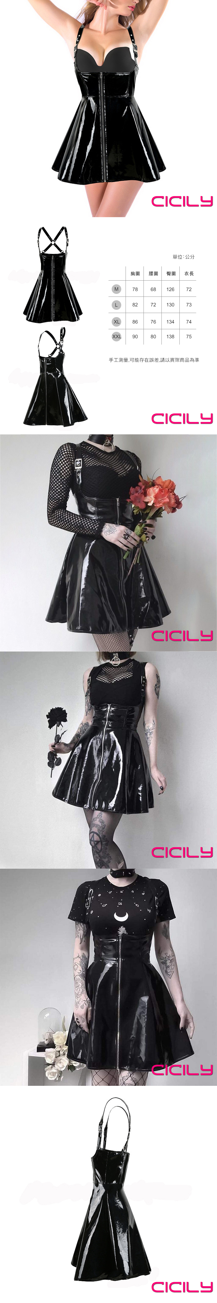 CICILY 誘惑天使 背帶漆皮短裙服裝 漆皮膠衣 黑 XXL