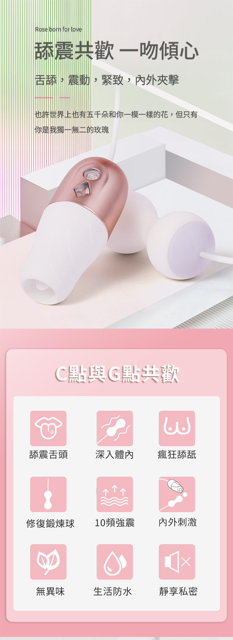 WOWYES-玫瑰花舌 5x10段變頻吸吮舌震共歡縮陰球震動跳蛋