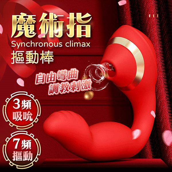 魔術指 7頻扣動x3頻吮吸矽膠震動按摩棒-可彎曲棒體
