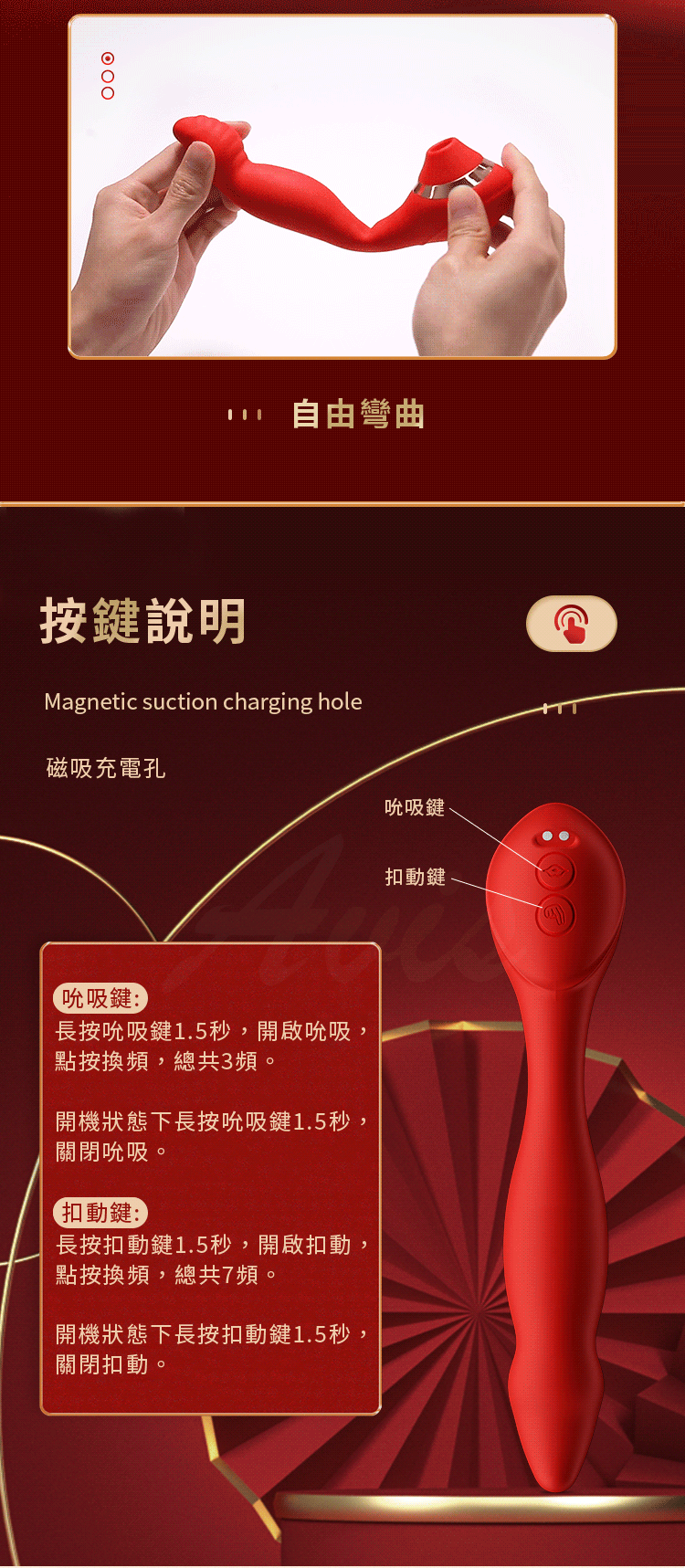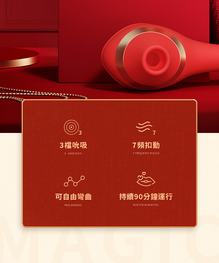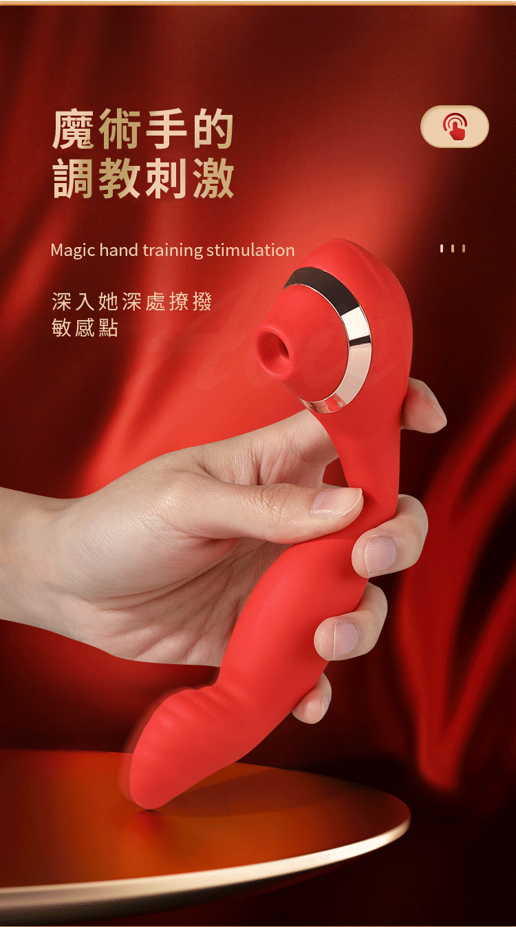名稱:魔術指 7頻扣動x3頻吮吸矽膠震動按摩棒-可彎曲棒體