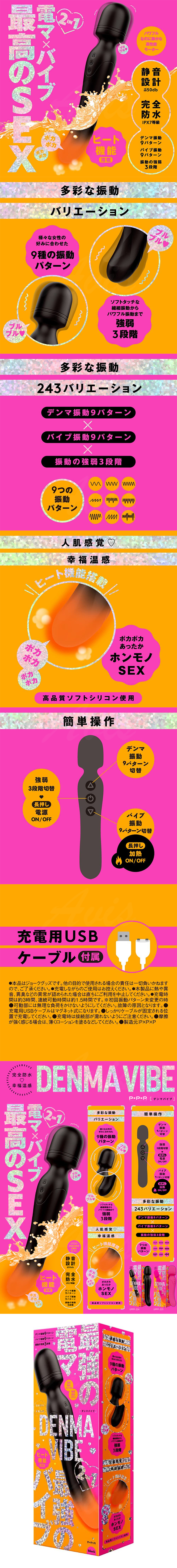 商品名稱:P.P.P|幸福溫感 DENMA VIBE |雙頭按摩棒 夜空黑