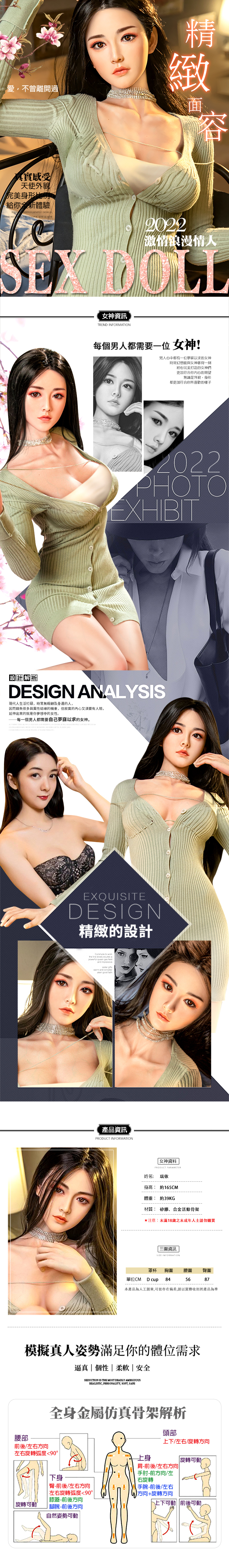 特色說明超擬真165cm真人矽膠娃娃3S級仿真皮膚塗層全面升級果凍胸,給你柔軟的舒適感受免費升級可站立款,解鎖多樣姿勢