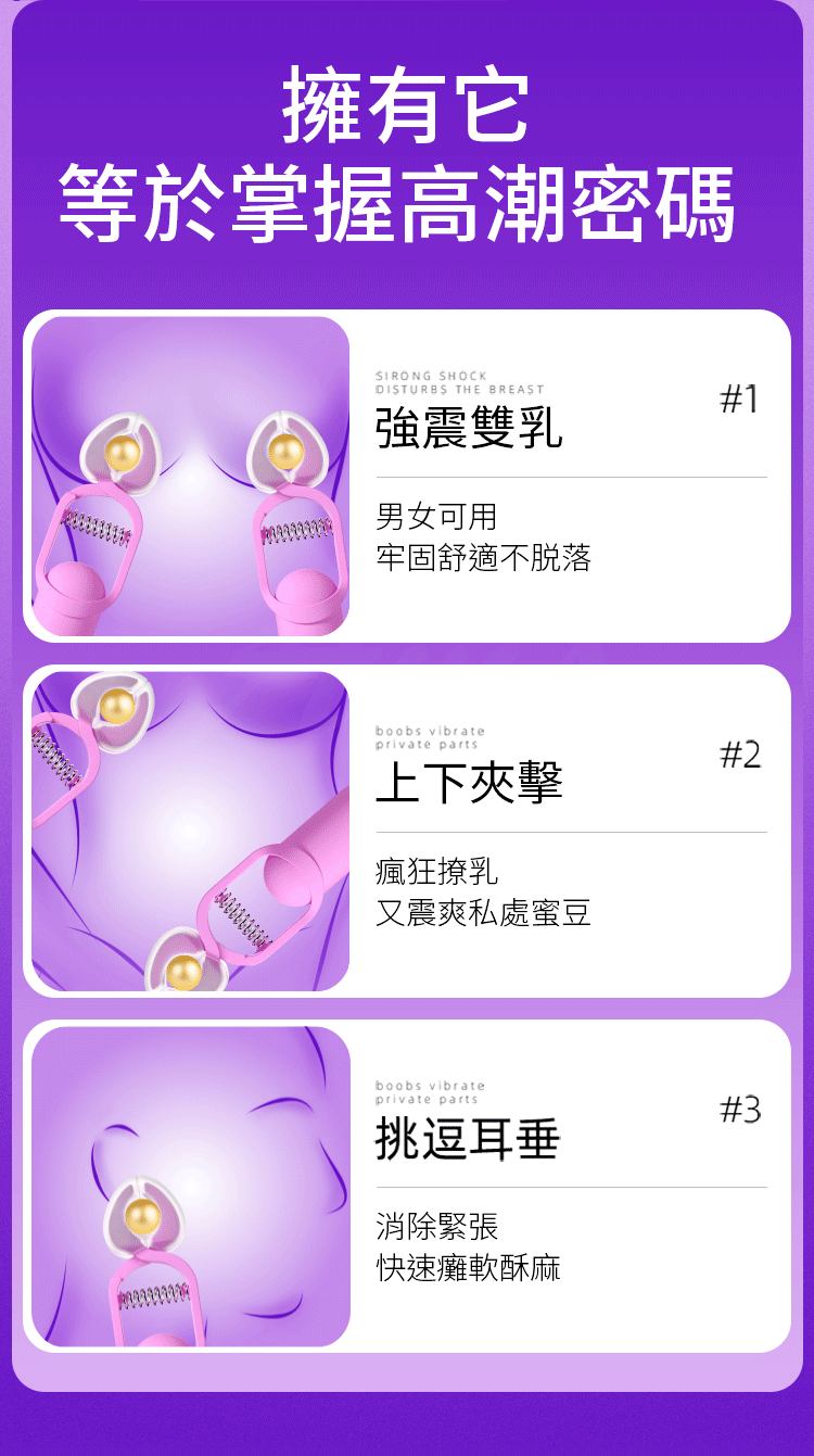 前戲挑逗瞬間酥麻癱軟,使用乳夾調情等於掌握高潮密碼。