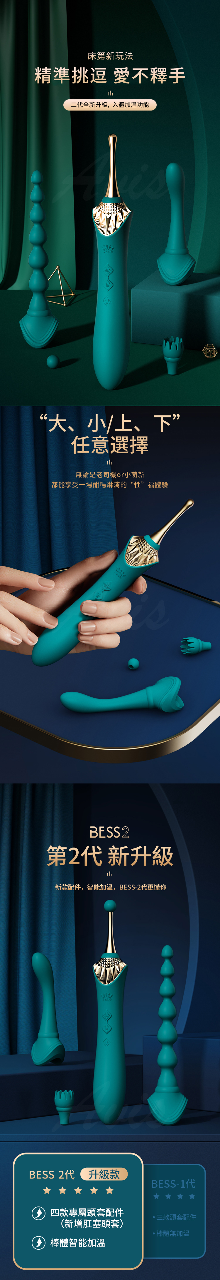 繼第一代 Bess 之後,這款第二代 Bess 陰蒂按摩棒變得更好了! 增加了肛門珠附件和加熱功能,將感官提升到一個新的水平。 Bess 2 帶有多個頭部附件,無論您是在尋找精確的刺激或 G 點瞄準,還是在內部的任何地方,都可提供定制的樂趣。 Bess 2 憑藉其創新的 DirectPower 技術給您最有針對性的刺激。 其強大的振動融入精確的設計中,使您能夠專注於敏感的性感區域。 Bess 2 的電機轉速高達每分鐘 10,000 次,帶來極速高潮效果!