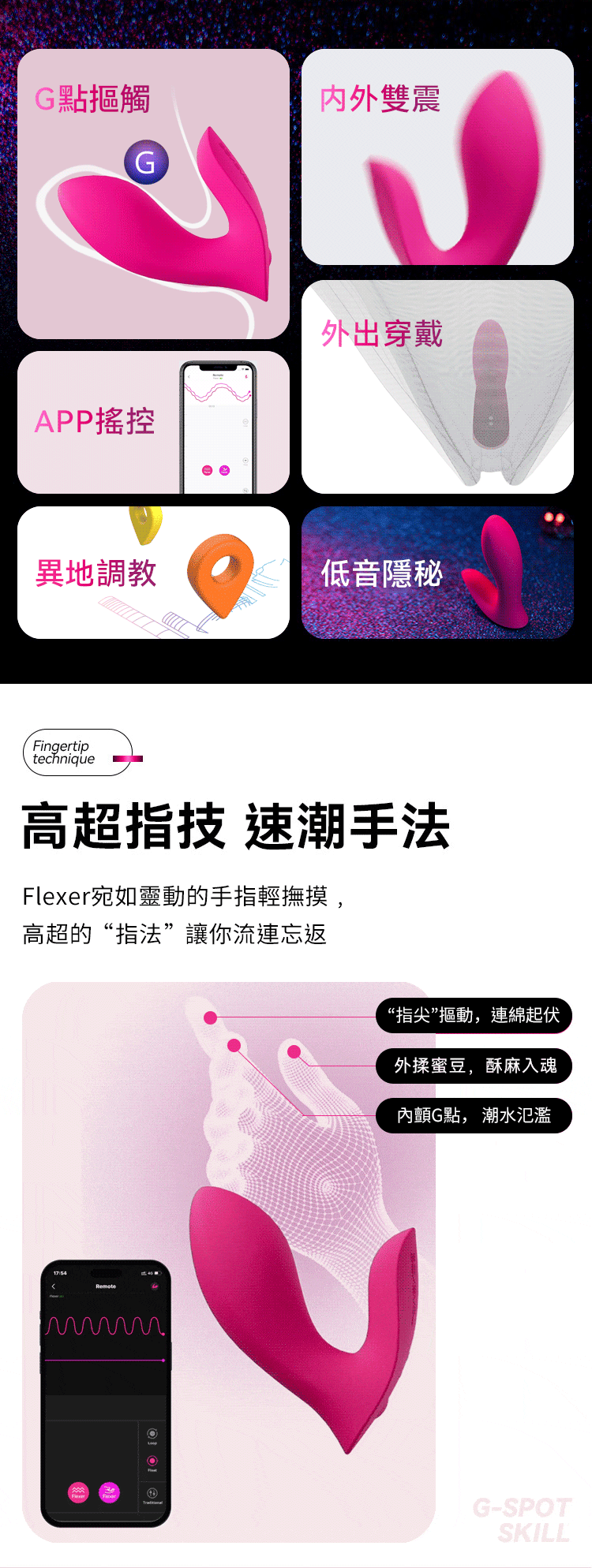 遠程遙控功能讓 Flexer 魔力手指代勞為您傳遞歡愉!用您的魔指小幫「手」遠程指弄伴侶!